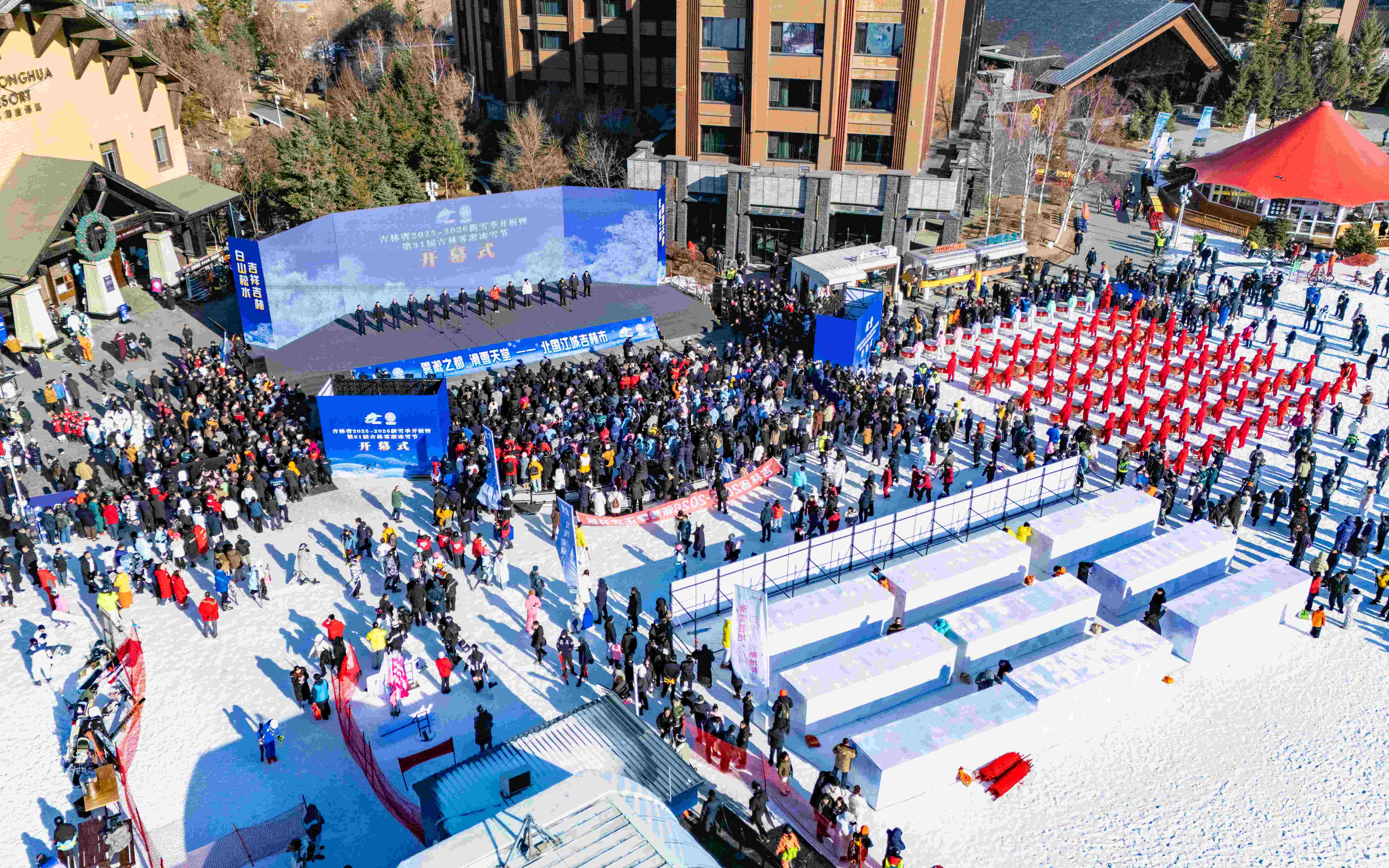 11月22日,由吉林省文旅厅、吉林市人民政府主办,吉林市文广旅局承办,中旅松花湖度假区协办的吉林省2025-2026新雪季开板暨第31届吉林雾凇冰雪节开幕式在中旅松花湖度假区举行。吉林省委书记黄强,省委副书记、省长胡玉亭,集团董事长王海民、总经理范云军等嘉宾及媒体、开板俱乐部代表共5000余人出席。