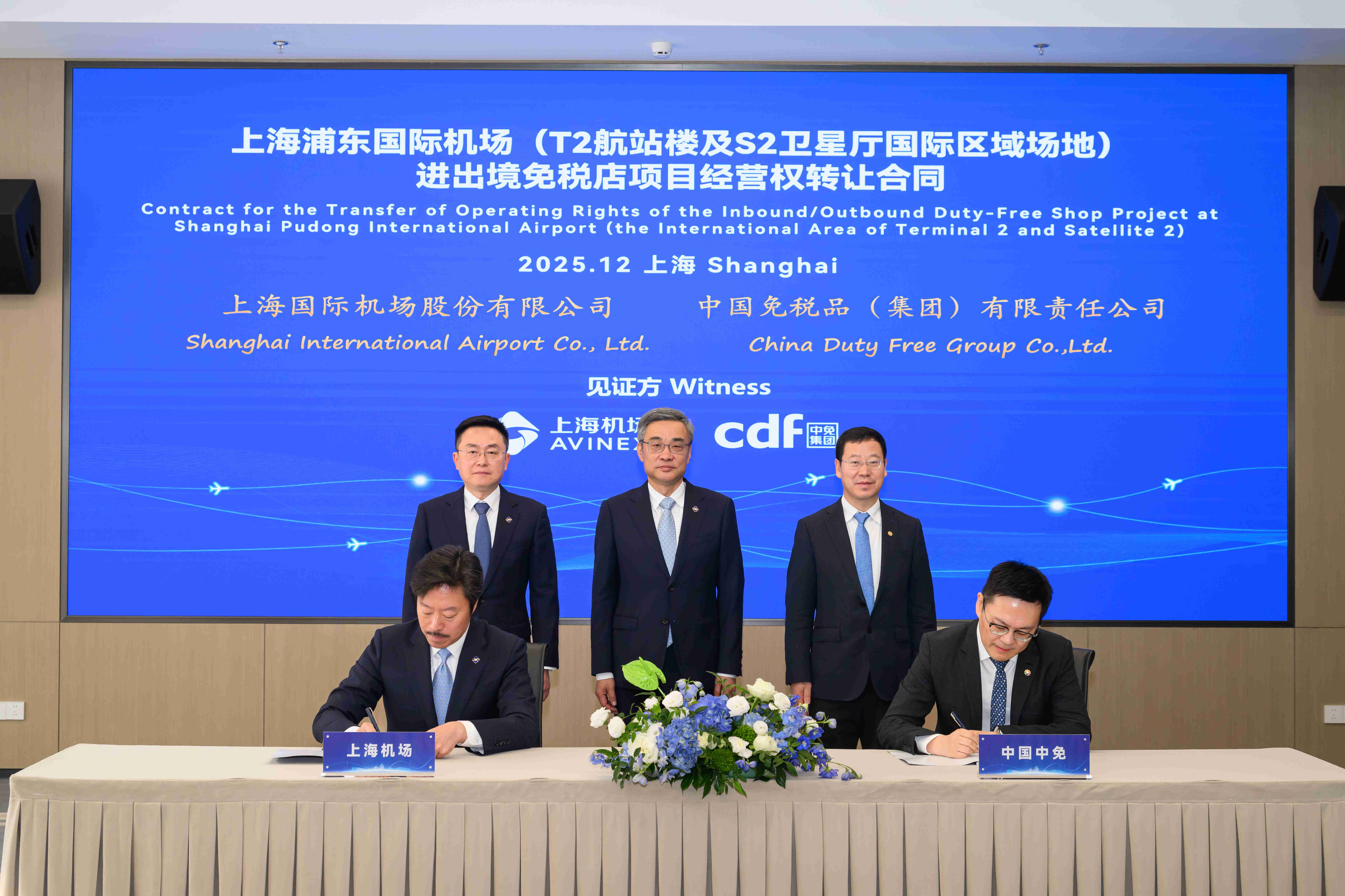 12月17日,在集团总经理兼中旅免税董事长范云军和上海机场集团董事长冯昕、总裁周浩的见证下,中旅免税与上海机场签约代表签署浦东机场(T2、S2)、虹桥机场(T1)免税店项目经营权转让合同,标志着双方合作迈入新阶段。