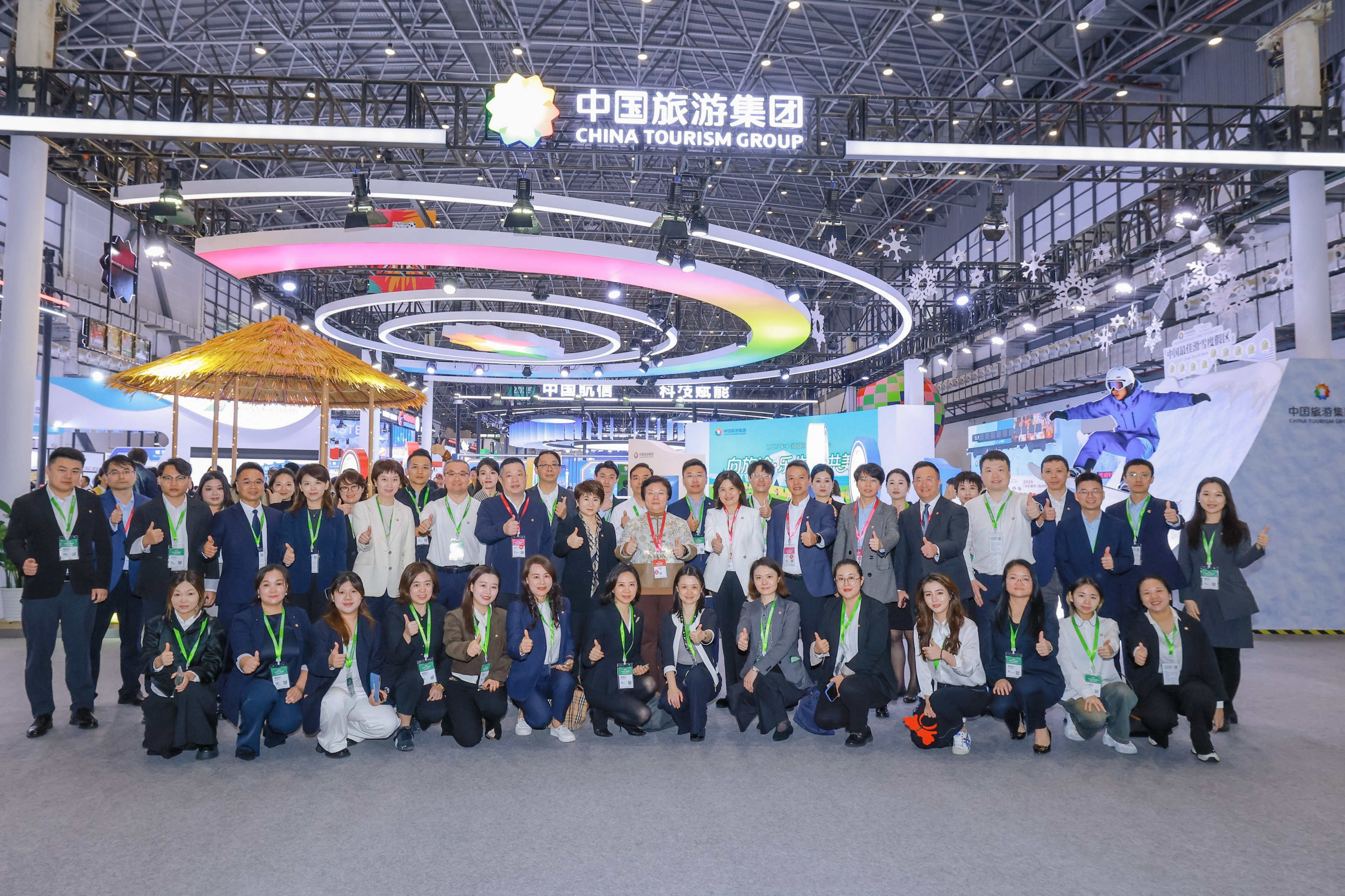 作为深耕海南的旅游央企,集团立足自贸港主场,以“向旅途·乐生活·共美好”为主题精彩亮相。现场面向全球采购商,全面展现集团文旅品牌形象与全产业链布局优势,重点推介免税、邮轮、新旅行、酒店、数科等业务,以及吉林松花湖、万宁中旅逐浪、中免健康、星光列车、“吉祥马”文创等特色文旅产品。集团展台通过VR冲浪等互动装置和“航海日志”集章打卡活动,结合国潮醒狮、机器人舞蹈等节目,成功跻身本届旅交会必打卡展台,荣获“最佳展台奖”“最佳组织奖”。活动现场,集团还同步开展海口总部大楼集中招商推介,为产业合作搭建桥梁。