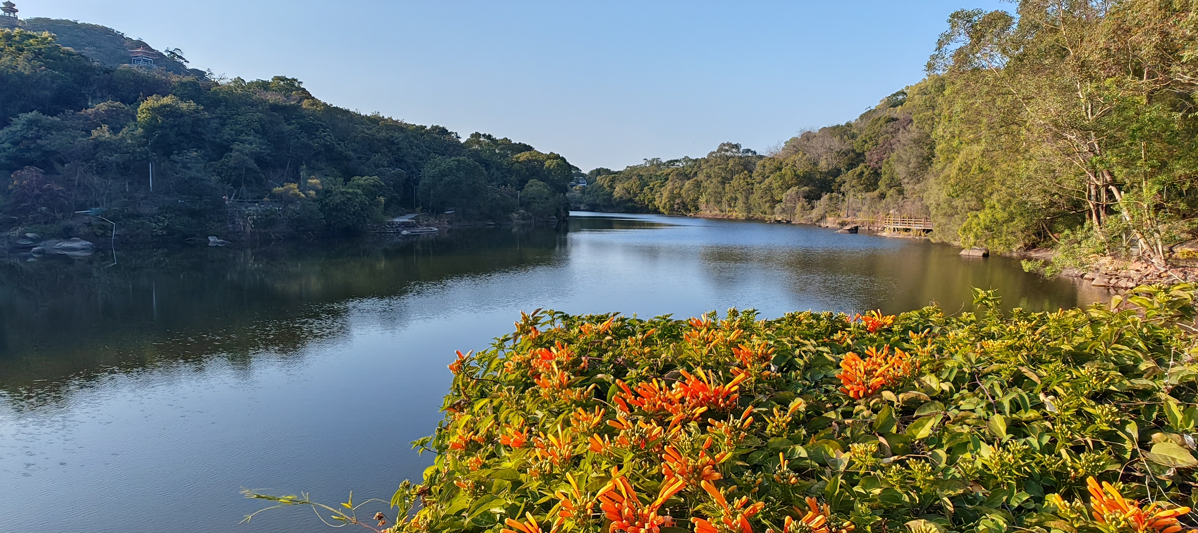 龟埕片区:为森林公园的中心景区,以龟湖为中心,建有环湖步道和观景台。湖西侧为占地500亩的“百龟寿园”和镌刻有知名书法家的墨宝1300多幅的鹰石山摩崖石刻区,该区域还建有游客中心和石厝知青旧址等建筑场馆。龟湖环湖建设了宽约3m的青石栈道,供游客环湖观赏湖面风光,湖水景观资源优美。
