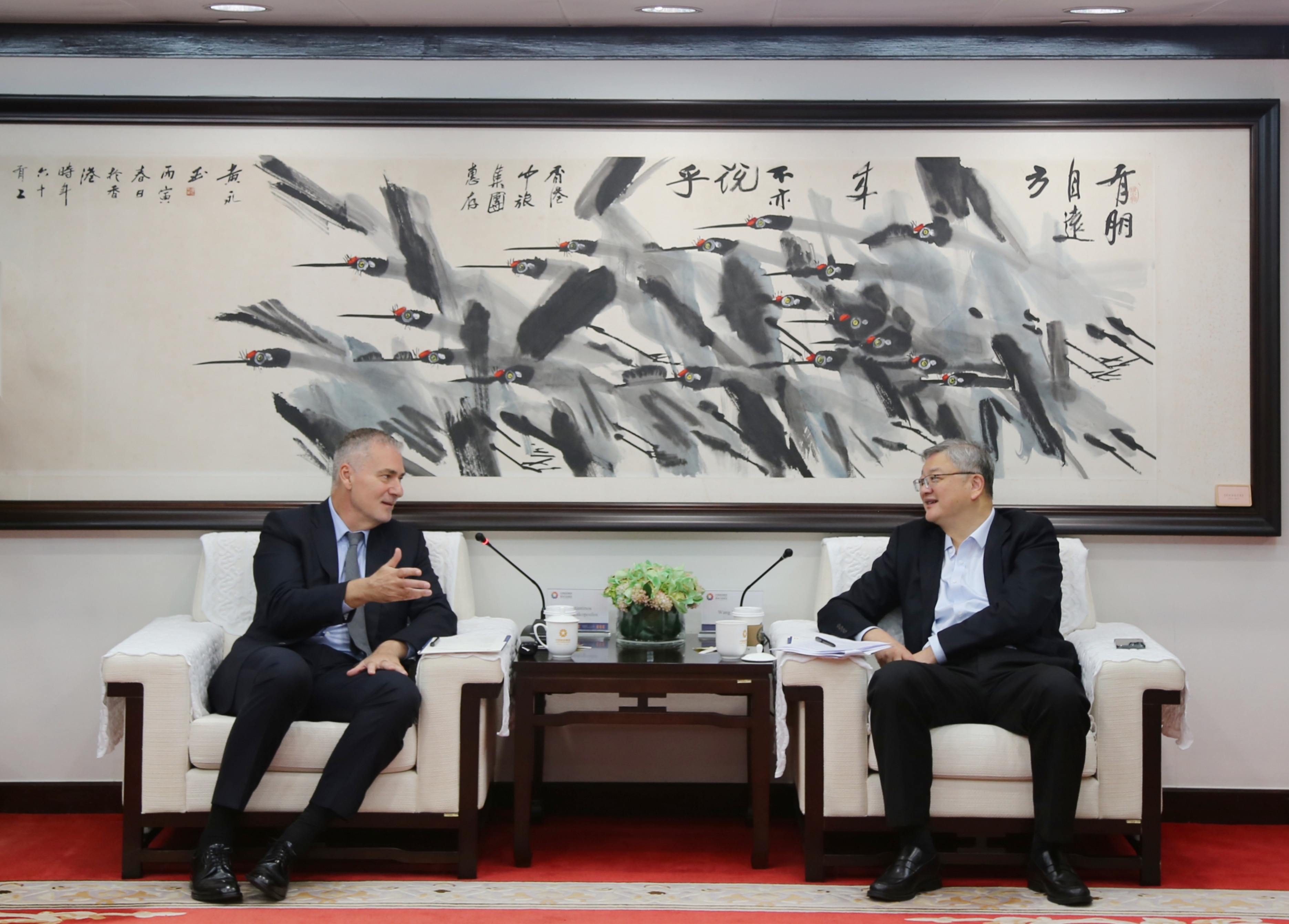 10月28日,集团董事长王海民会见高世迈集团(Costamare Inc.)董事长兼执行总裁Konstantinos Konstantakopoulos一行。