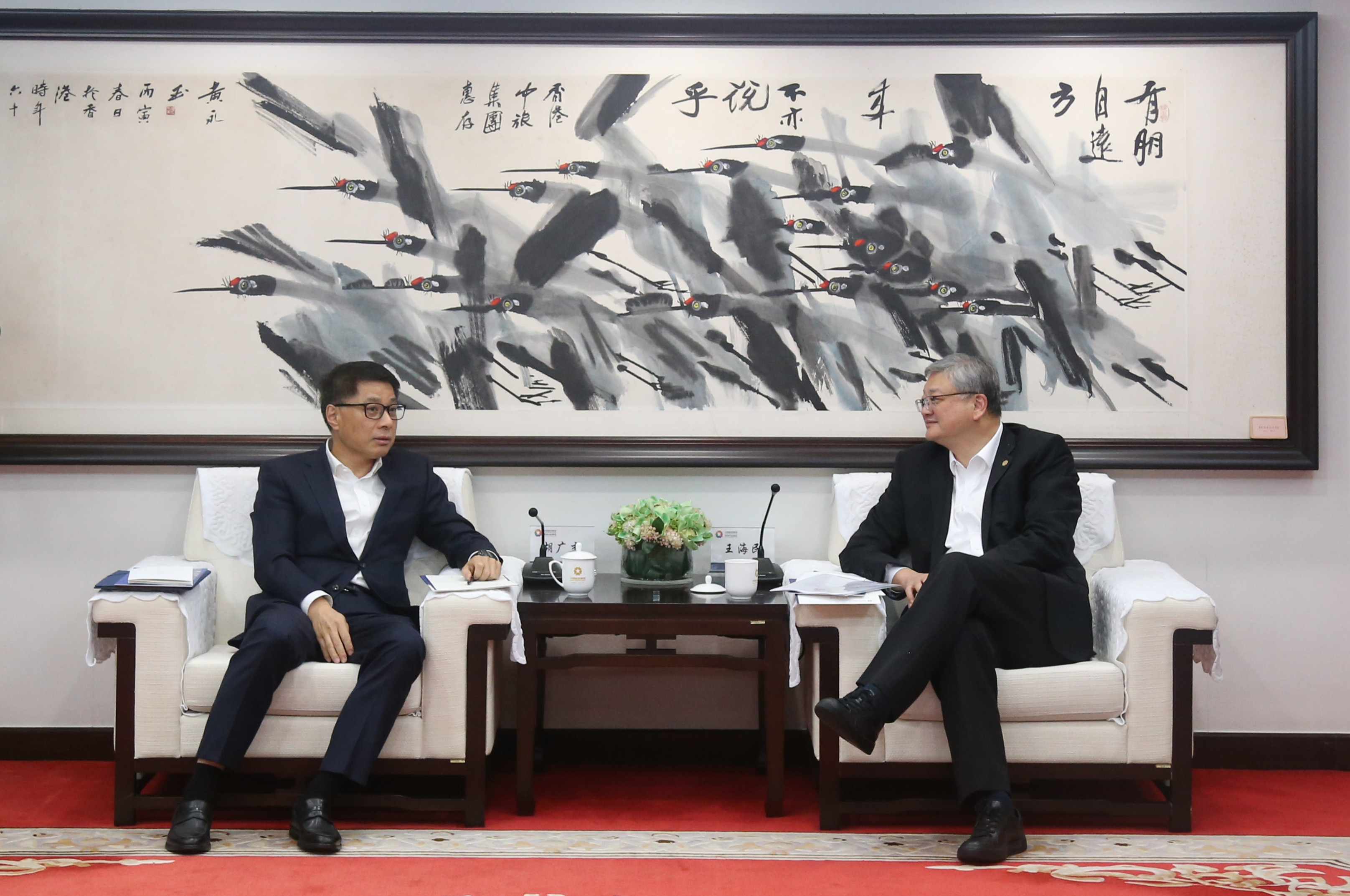 1月14日,集团董事长王海民在香港会见上海市普陀区委书记胡广杰一行。