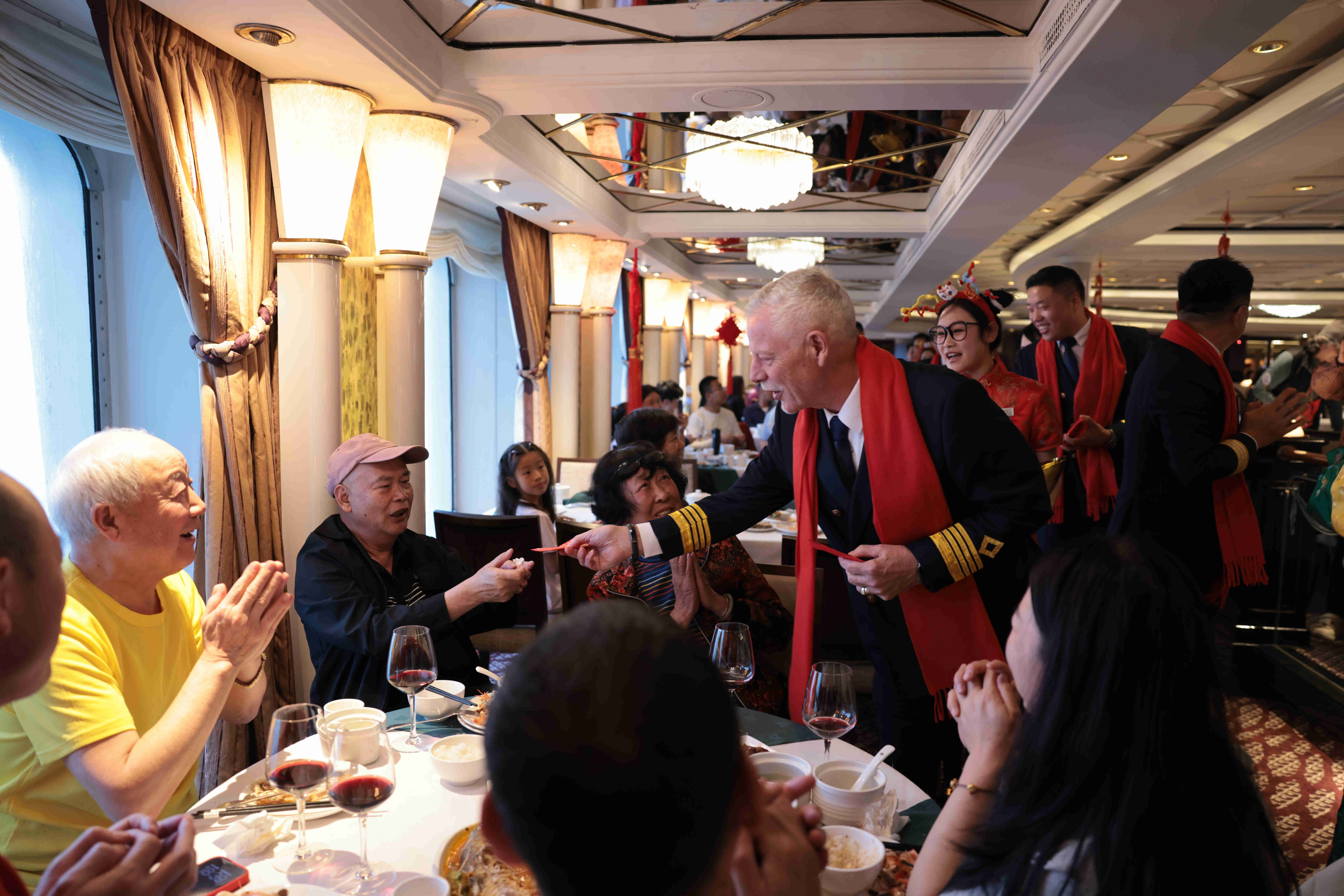 华夏邮轮旗下“爱达・魔都”号、“爱达・地中海”号和“鼓浪屿”号以花灯、春联、窗花等传统民俗装饰对全船进行布置,营造出红火热闹的节日氛围,并围绕非遗主题推出独具特色的新春活动。