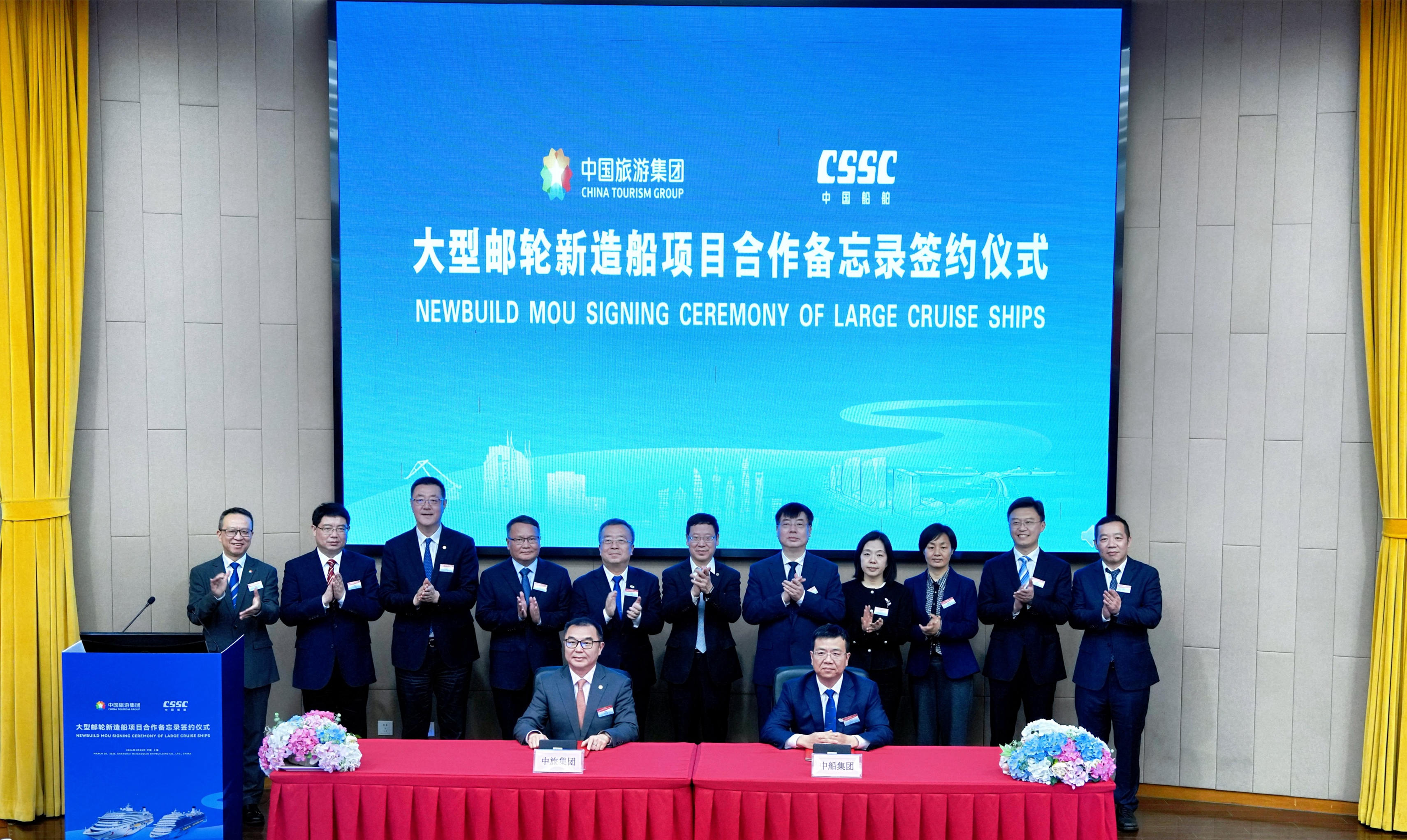 同日签署的新造船项目合作备忘录,标志着集团与中船集团战略合作再上新台阶。集团将发挥文旅全产业链运营优势,将运营需求前置嵌入设计建造环节,融入中华审美与文化意趣,保障新船“落地即运营、运营即精品”,目标于2030年底前完成交付。