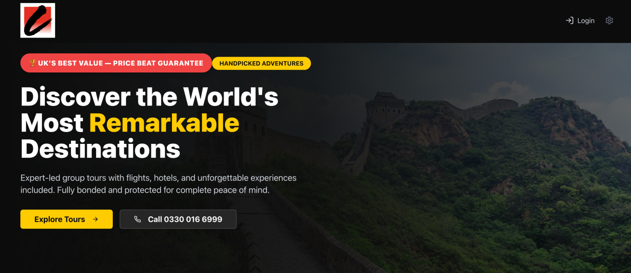 3月29日,中旅旅行面向英国市场的自营入境游平台Cultural Tours(https://culturaltours.co.uk)正式上线,所有产品均为自主研发运营,实现从产品设计到落地服务的全链条品质把控。