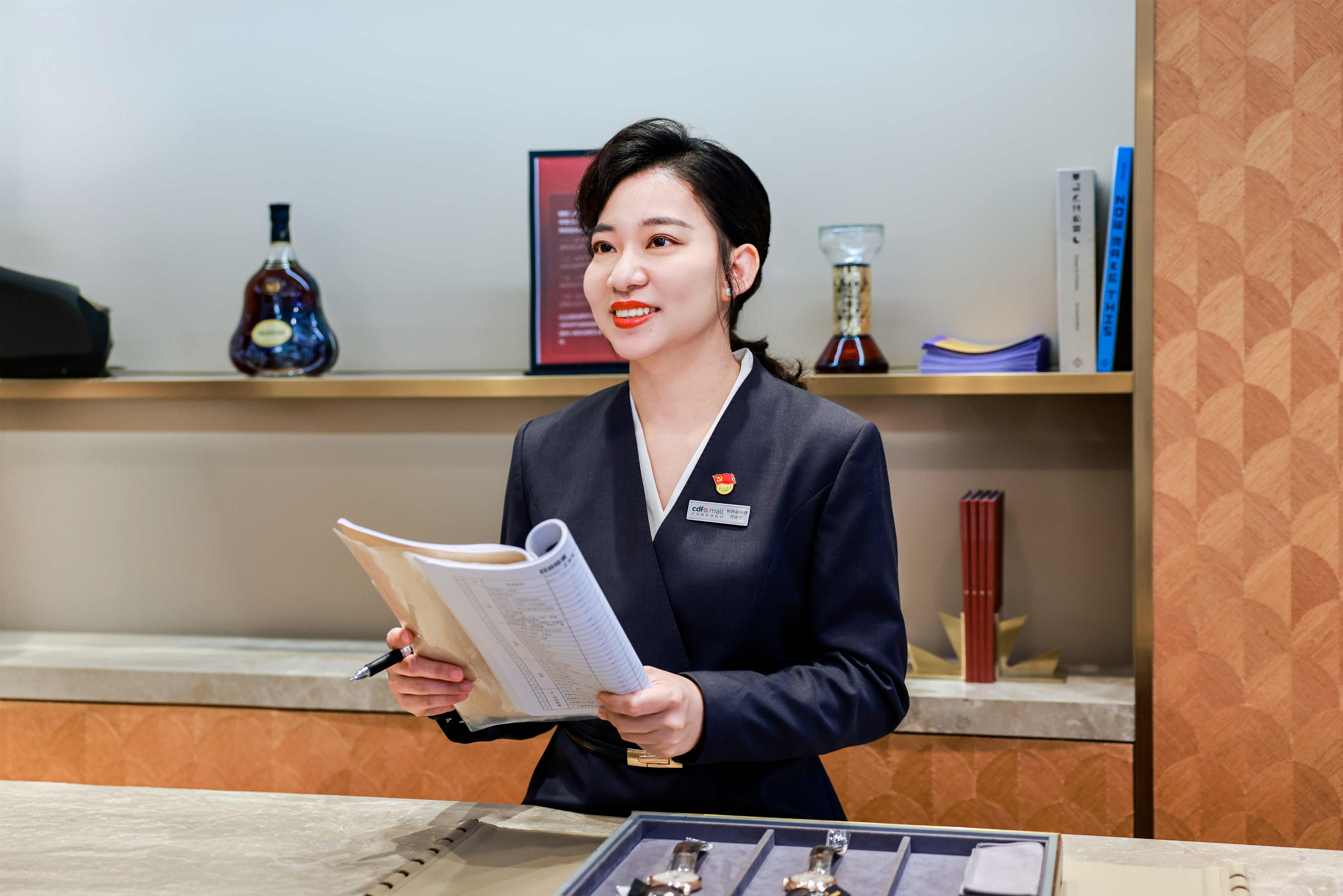 符曲芳自2013年投身三亚国际免税城一线,始终牢记习近平总书记视察三亚国际免税城时提出的“诚信经营、优质服务”重要指示精神,统筹203个销售团队优化服务流程,新增VIP专属服务及异常处理规范,将优质服务持续转化为业绩增量。近两年来,她带领团队实现营收突破24亿元,创下5项单店销售全球第一的佳绩,助力擦亮离岛免税“金字招牌”。她积极推动党建与业务深度融合,牵头成立“党员直播攻坚组”,开展直播57场,带动回购销售超100万元;组建“KOS党员突击队”,通过小红书等内容平台实现曝光585.7万次,引流企微客户3.1万人,直接拉动销售额达1.4亿元。